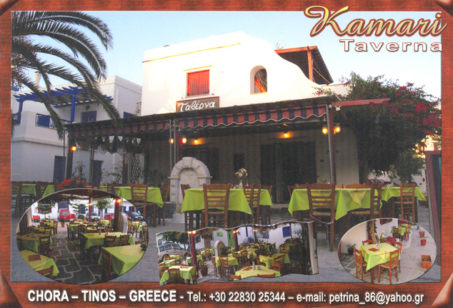 Οικογενειακή Ταβέρνα - Καφέ "Καμάρι Θεσσαλονίκης" Τελκή Μαρία Πλ. Τριών Ιεραρχών - Τήνος Τηλ: 22830-25344