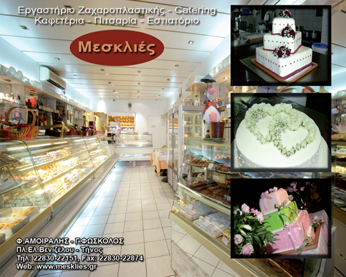 «ΜΕΣΚΛΙΕΣ», ΑΜΟΙΡΑΛΗΣ ΦΡ. - ΦΩΣΚΟΛΟΣ ΓΕΩΡΓ. ΟΕΕ, ΠΑΡΑΛΙΑ ΤΗΝΟΥ, ΤΗΛ: 2283022151, Fax: 22830-22874 e-mail: mesklies@thn.forthnet.gr