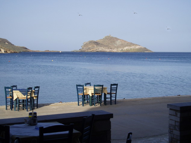 Μέρα ή νύχτα, έλάτε στο Ουζερί μας για να απολαύσετε παραδοσιακούς μεζέδες ή τον καφέ σας με φόντο το νησί Πλανήτης απέναντι.